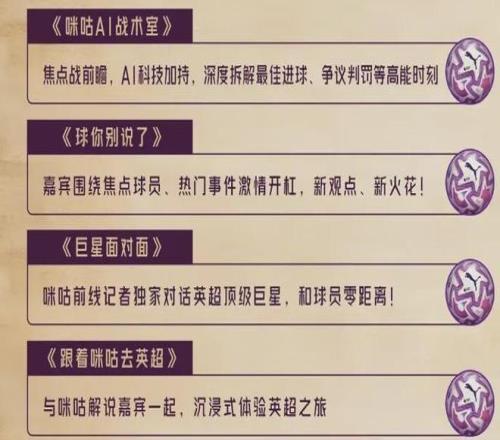 此外,咪咕还特别引入方言解说嘉宾,用熟悉的乡音传递英超的激情。当全球化的英超赛事与本土文化产生碰撞,不同地域的球迷的情感共鸣将进一步被激发。
