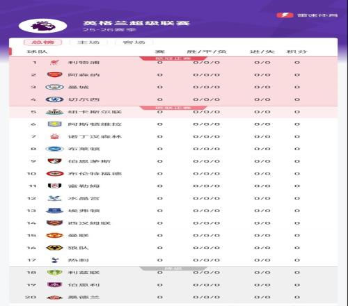 2526赛季英超联赛明日凌晨拉开大幕,预测冠军得主赢雷速好礼!