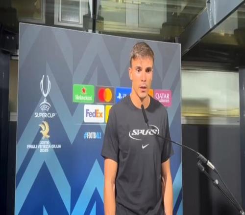 在2025年欧洲超级杯点球大战不敌巴黎圣日耳曼屈居亚军之后,托特纳姆热刺中场帕利尼亚在混合采访区接受了采访。
