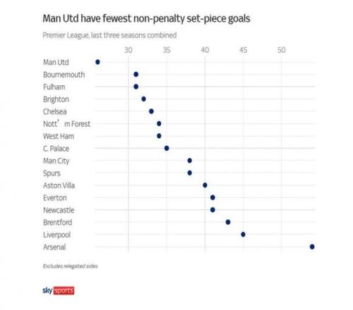 这种威胁对曼联来说尤其重要,因为他们正寻求提升定位球得分能力。过去三个赛季,他们是英超定位球进球最少的球队。