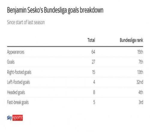 那个进球是塞斯科过去两个德甲赛季用头打进的8个球之一。这个数字在联赛中排名第四,仅次于凯恩、吉拉西和克莱因丁斯特,凸显了他在空中的巨大威胁。