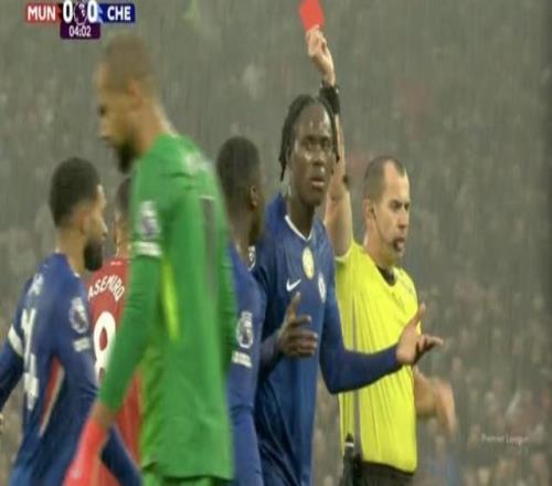 上轮英超,十人切尔西1-2不敌十人曼联,比赛开场5分钟,切尔西门将桑切斯就因出击放倒姆伯莫被红牌罚下,当时查洛巴对桑切斯“死亡凝视”。