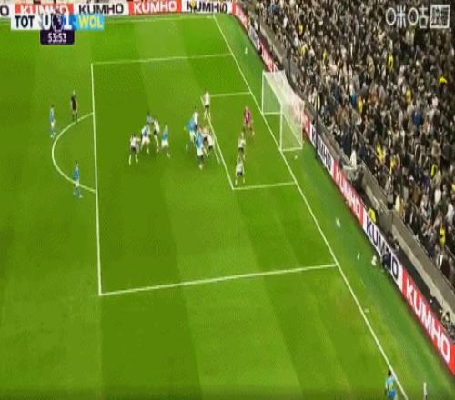 第90+3分钟,萨尔做球,帕利尼亚破门,热刺1-1