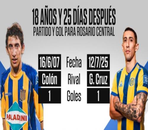 78分钟,迪马利亚点射破门,回归首秀就进球。这也是他时隔18年25天后,再次为罗萨里奥中央进球。