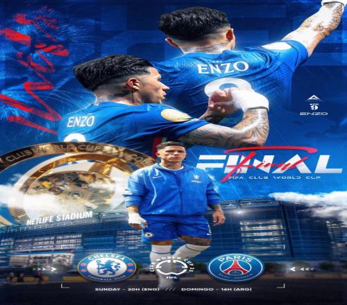 切尔西中场恩佐-费尔南德斯更新社媒动态,晒出世俱杯决赛个人海报,预热这场重要的比赛,海报背景为大都会人寿体育场和世俱杯奖杯。