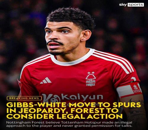 消息称,诺丁汉森林暂时搁置了吉布斯-怀特转会热刺的交易,他们已经就潜在的法律诉讼联系了他们的律师。天空体育称,森林已经停止了与热刺的所有沟通。