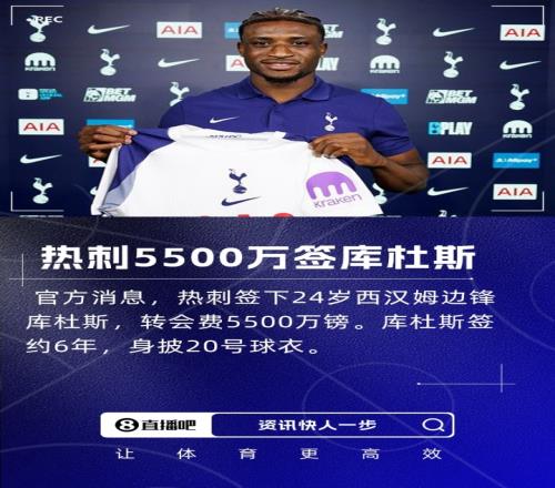 官方消息,热刺签下西汉姆边锋库杜斯,转会费5500万镑,签约6年。