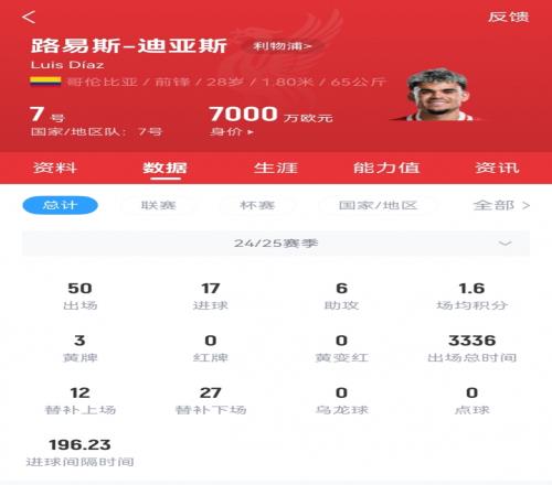 体育资讯07月11日报道宣称 图片报报道,拜仁5200万欧首次报价迪亚斯,距离利物浦8000万欧要价还有很大差距。