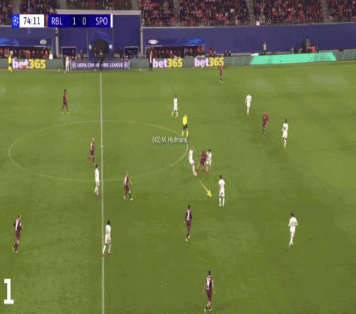 下面这个例子,是约克雷斯在葡萄牙体育对阵对阵格拉茨风暴的欧冠比赛中,一次精彩的个人边路奔袭。