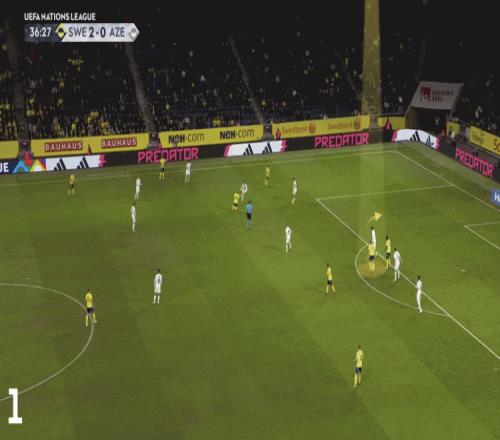 边后卫埃斯盖奥突入禁区,并传中球给到了约克雷斯,而球尚未送到,瑞典人就已经卡住了身位。