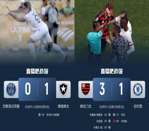 两队输球分别是:切尔西在小组赛阶段1-3不敌弗拉门戈,巴黎则是小组赛阶段0-1不敌博塔弗戈。