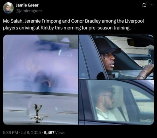 体育资讯7月8日报道宣称 据记者Jamie Greer的报道,包括萨拉赫、弗林蓬以及布拉德利在内的利物浦球员于当地时间今天早上抵达柯克比训练基地,开启季前训练。