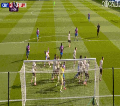 第9分钟,水晶宫角球,萨尔乱战中门前扫射破门,水晶宫1-0利物浦!