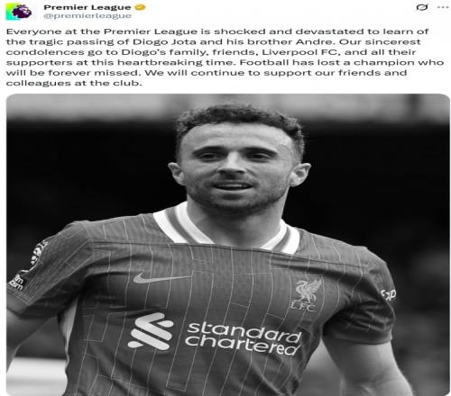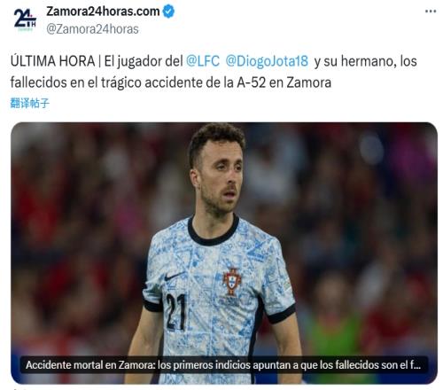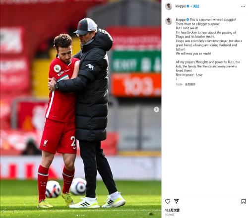 世俱杯开打后引发了不少话题,比如曼城被新月绝杀,国米爆冷出局内讧不停,皇马拜仁等豪门晋级之路起起伏伏等等。可就在这空档,就在五大联赛结束后,本该休息的间歇季,突然传来的噩耗令每一个足球迷心碎。利物浦28岁的主力边锋迪奥戈-若塔因车祸去世,跟他同行的还有亲弟弟。