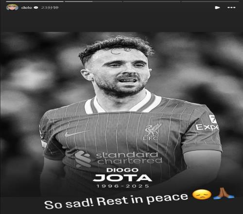 体育资讯7月3日报道宣称 英格兰球星阿里今天在社交媒体发文,悼念因车祸去世的利物浦球星若塔。