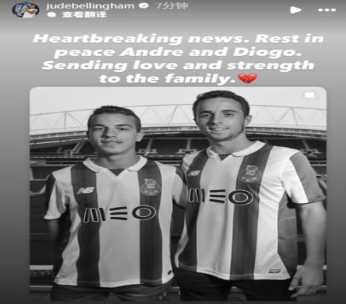 贝林厄姆:令人心碎的消息,安息吧安德烈、迪奥戈。向你们的家人送上爱和力量。