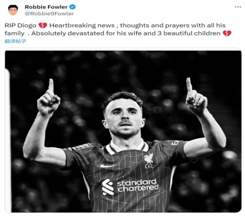 体育资讯7月3日报道宣称 利物浦名宿罗比-福勒社媒发文,悼念因车祸离世的利物浦前锋若塔。
