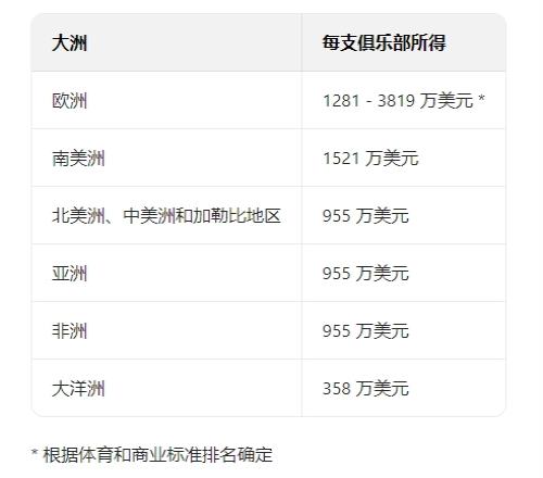 世俱杯最新奖金(参赛奖+表现奖)排名如下
