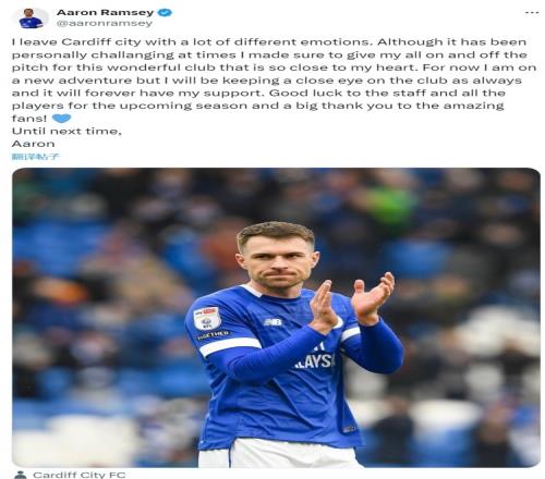 拉姆塞社媒告别卡迪夫城:我将开启新的征程,祝俱乐部新赛季好运