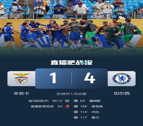 体育资讯6月29日报道宣称 在世俱杯1/8决赛,切尔西经历加时4-1击败本菲卡。