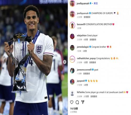 宽萨也在赛后通过社媒晒出自己的捧杯照,并配文:“欧洲冠军!”
