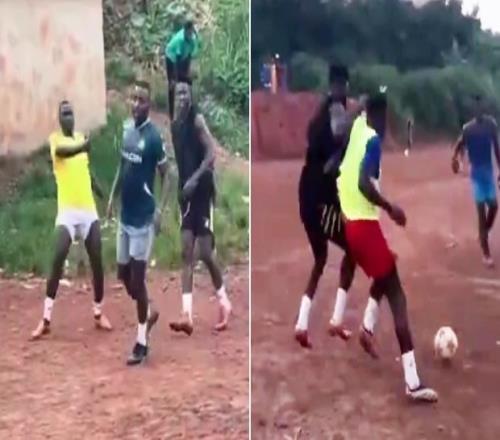 体育资讯6月27日报道宣称 近日,曼联门将奥纳纳回到了家乡喀麦隆度假,期间他与童年好友一起在野球上踢球。