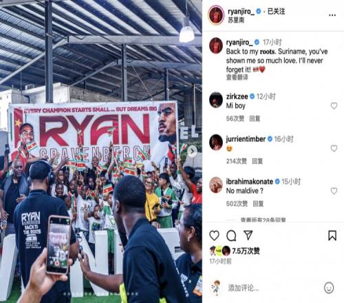 赫拉芬贝赫社媒:回到了我的根苏里南,这份情谊我永世难忘!