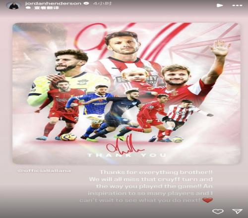 体育资讯6月25日报道宣称 拉拉纳今天宣布退役,亨德森通过社交媒体发文为他送上祝福。