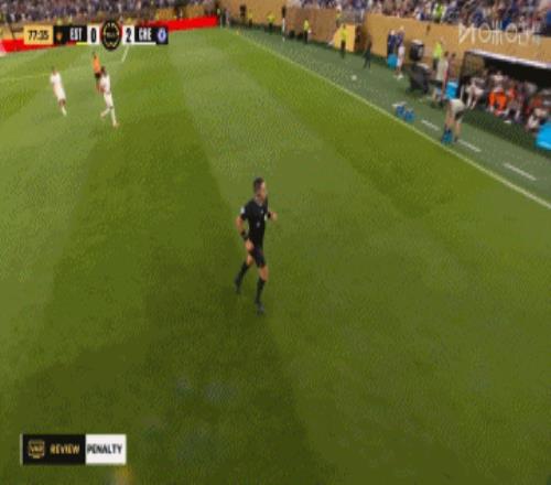 第75分钟,小将桑托斯打门碰到突尼斯希望球员手部,VAR检查后主裁判又亲自去看,表示不是点球。