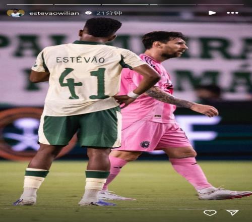 埃斯特旺半场结束时与梅西互换球衣,赛后他在社交媒体上晒出与梅西的赛场合照,分享与偶像同场竞技的喜悦之情。