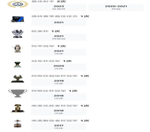 自2017年从河床出道成为职业球员以来,阿尔瓦雷斯此前每个赛季都能拿到冠军,7个赛季在俱乐部和国家队共拿到17座冠军奖杯。