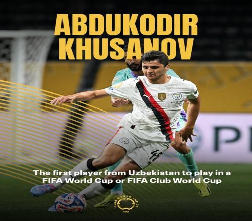 FIFA官方晒出海报表示,胡桑诺夫成为历史上首位参加世界杯或世俱杯的乌兹别克斯坦球员。