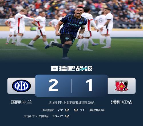 劳塔罗精彩破门,卡博尼补时绝杀,国际米兰2-1战胜浦和红钻。