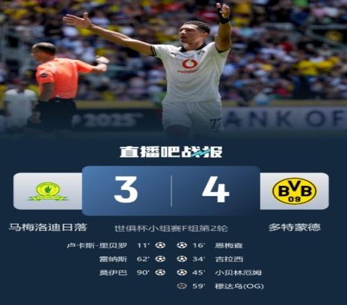体育资讯6月22日报道宣称 世俱杯小组赛次轮,多特以4-3的比分险胜马梅洛迪日落。本场比赛之后,在世俱杯赛场上,欧洲球队面对非洲球队取得全胜。