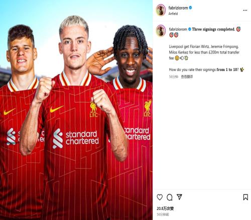 夏窗才刚开始罗马诺:利物浦不到2亿镑签三大新援,如何评价