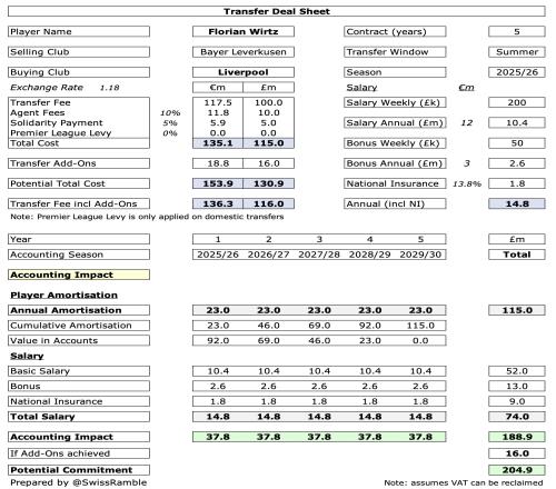 体育资讯06月16日报道宣称 据著名数据博主Swiss Ramble统计,利物浦将在维尔茨身上花费约2亿镑。