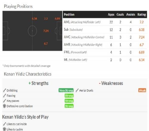 当前撑起尤文球迷期待的,还是20岁的年轻小将伊尔迪兹。这名土耳其天才速度快、技术好,擅长带球突破,上赛季在意甲成功过人113次排名第一。