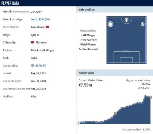 球队的头号球星,当属摩洛哥人苏菲安-拉希米,他最耀眼的时刻是在2024赛季的亚冠。
