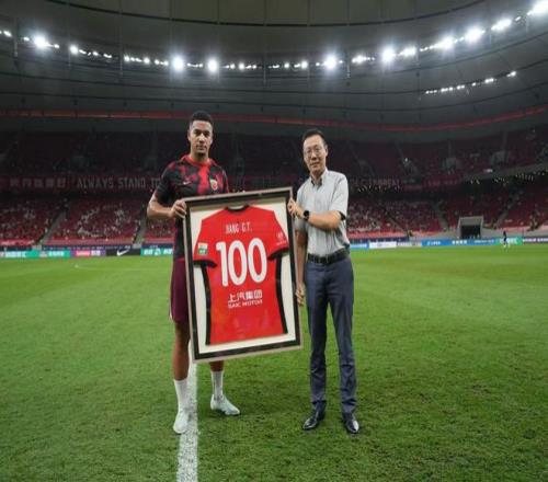 赛前,海港俱乐部为蒋光太举行了出战百场纪念仪式。