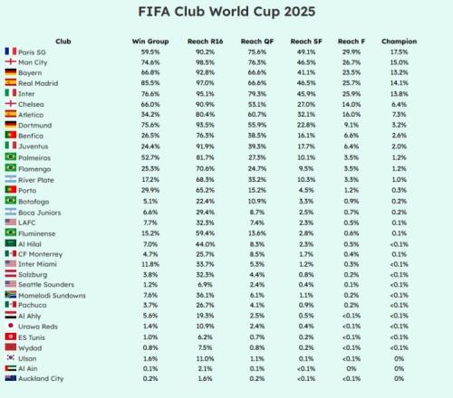 综合实力对比A组肯定是比较弱的,波尔图算是这组里的大哥了。切尔西、国米、多特签运则也是不错,出线不难。B组、C组、G组、H组有两支欧洲球会,其中豪门晋级概率很大,只要自己不掉链子就没啥问题;其他俱乐部,则要在跟其他对手比拼中尽力拿分,巴西的博塔弗戈、阿根廷的博卡青年、沙特的利雅得新月可能会给他们制造困难。