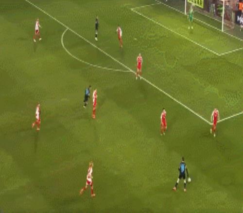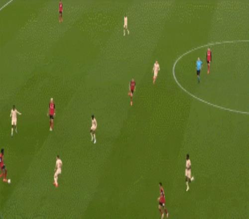 维尔茨接球后没有得到想要的空间,直接横传却被封堵。如果利物浦的进攻想要围绕维尔茨建队展开,会有一些问题。就是如果空间制造不出来,仅仅靠能跑,身体力量不占优,技术也没那么出色的维尔茨会比较难。