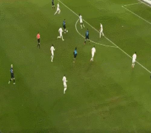 随后分球给到格里马尔多,紧跟着再前插禁区肋部接球。最后一下射门,强在脚下动作频率。他并没有去过人,却靠着摆脱动作快,可以射门得分。