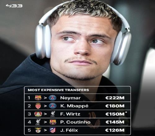 所以将维尔茨转会费放在历史第三有点超前了,不过高于菲利克斯的1.26亿欧元应该是没有疑问的。