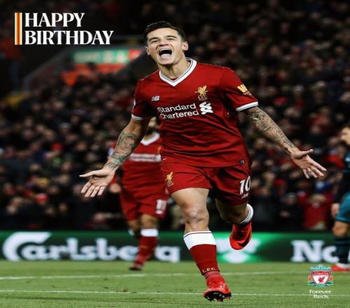 体育资讯6月12日报道宣称 利物浦官方社媒更新动态,为库蒂尼奥庆生。