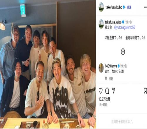 大胜印尼后久保建英晒照,9名日本国脚在内的“长友会”线下聚餐
