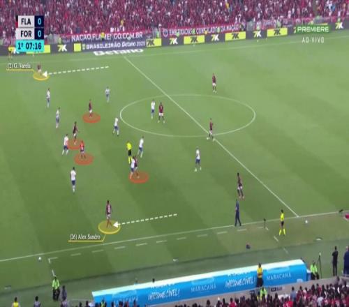 不过,具体打法还是会根据球员特点和对手情况而有所不同。例如,埃弗顿-索亚雷斯在担任左边锋时更倾向于贴近边线活动,这意味着弗拉门戈的左后卫站位会相对内收或位置更深参与防守。