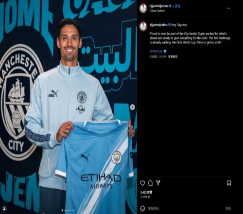 嘿,曼城球迷们,我很自豪能够成为曼城大家庭的一员!对未来我感到无比兴奋,并且已经准备好为这家俱乐部倾尽全力。第一个挑战已经在等待着我们:世俱杯,是时候开始工作了!