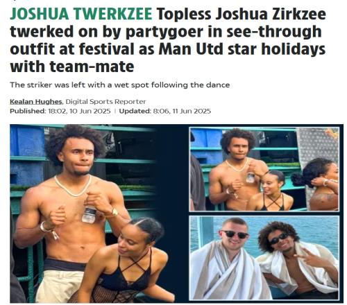 体育资讯06月11日报道宣称 据太阳报消息,曼联球星齐尔克泽在度假参加派对时与一名女子跳起电臀舞。