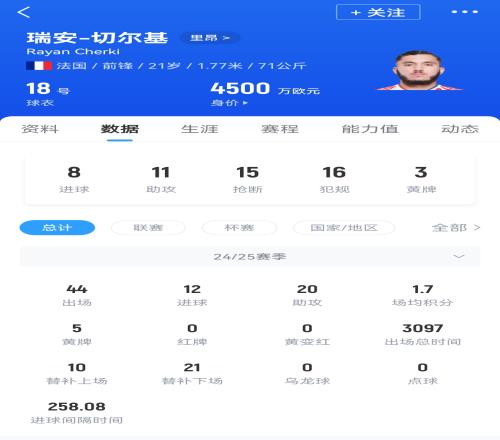 切尔基是里昂青训出身,目前身价4500万欧元,由于他的合同还剩最后一年,所以转会费比身价有大幅降低。