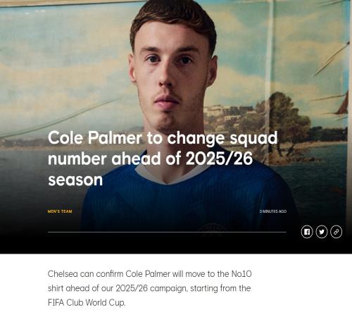 体育资讯06月05日报道宣称 切尔西官方发布公告,宣布帕尔默将在2025/26赛季改穿10号球衣,帕尔默将从世俱杯开始身披10号球衣。